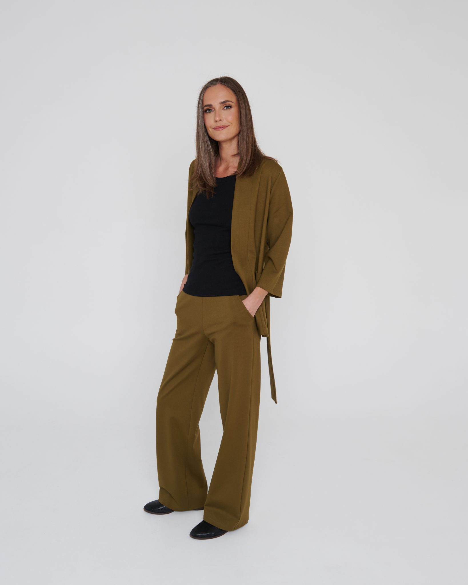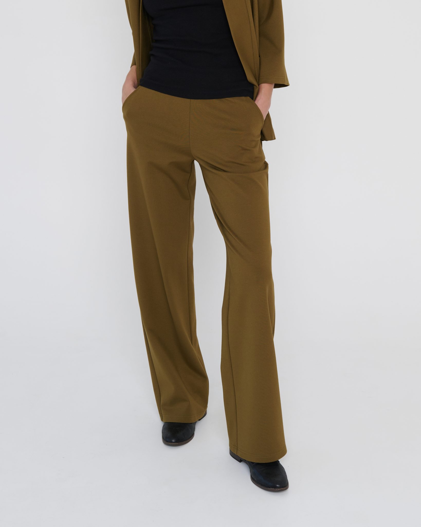 Sleeky Wide Chic Trousers in Olive