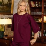 Smooth Moves blouse-sweater is made from soft and stretchy fabric that is wrinkle free.