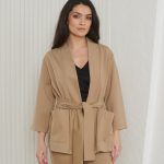 Kimonost inspireeritud On the Go jakist saab kiiresti su lemmikese riidekapis – seda saab kanda millega iganes ja see sobib igale üritusele! Viska see peale kui lähed teatrisse, kiirele tururingile või reisides. Sobib kandmiseks nii kleidi või pükstega. Tänu kitsastele varrukatele on seda mugav kanda ka mantli või jope all. Jakil on ees kaks taskut ja lai vöö.