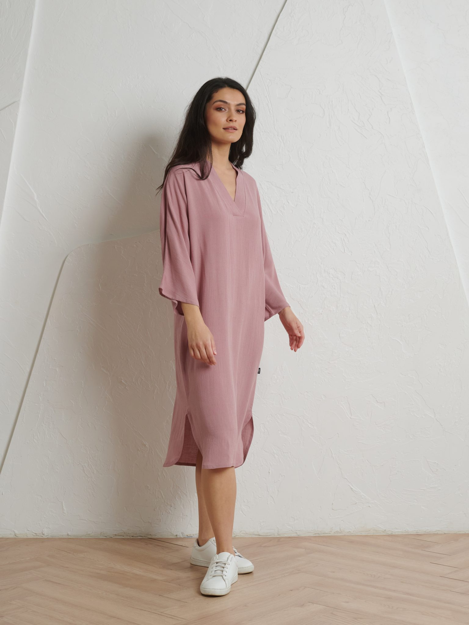 Meie kleit Beach Vibes on õhuline ja õrn kimono-stiilis kleit, mis liigub koos suvise tuulega ja vaevu puudutab Su nahka. See võib olla kõige õhem kleit Su garderoobis — ideaalne just nendeks eriti soojadeks suvepäevadeks, mil päeva plaanidesse kuuluvad vaid varvastega rannaliivas mängimine ja mere õrna lainetuse nautimine. Õhuke, lendlev kangas teeb kleidist ideaalse valiku bikiinide peal kandmiseks. See kleit on nagu suvi ise: lihtne, pehme ja paitatud päikesekiirtega.